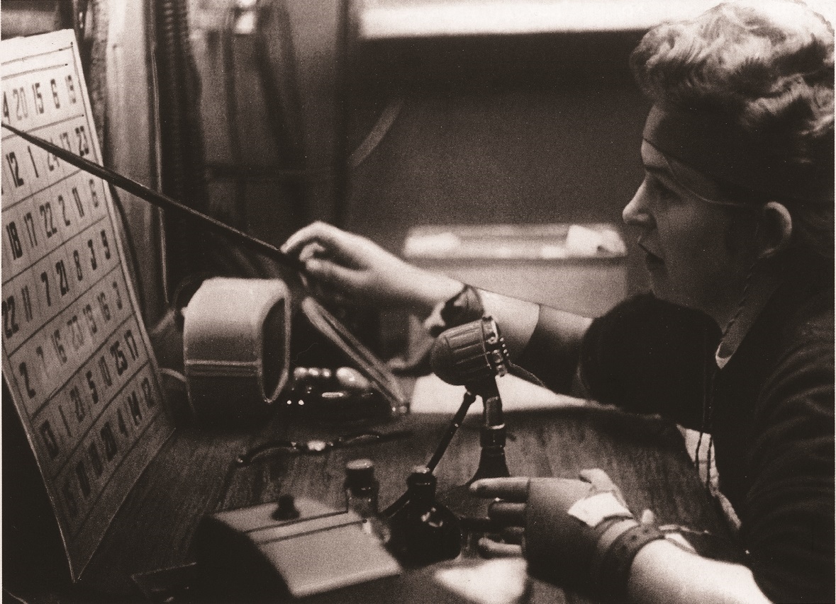 В.В. Терешкова пробует бортовое питание в тренажёре космического корабля «Восток». 1963 г.